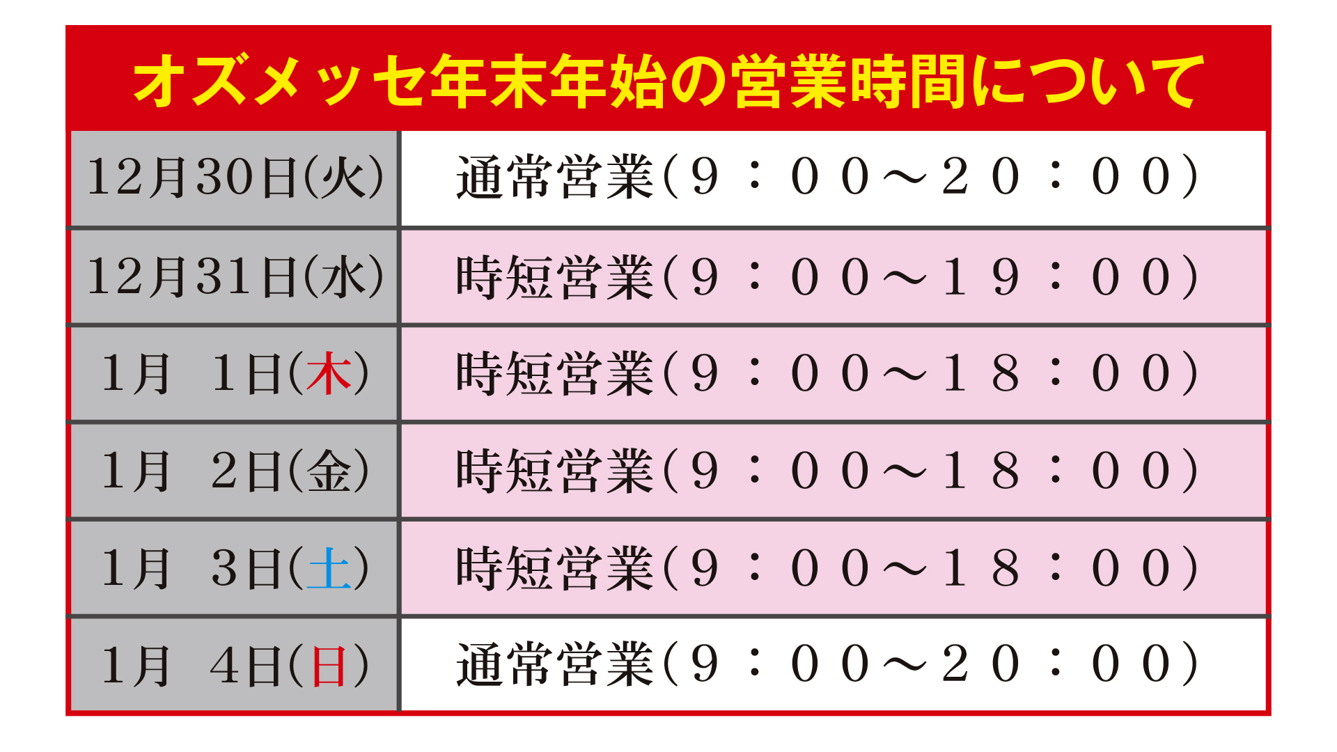 Pickup! 年金支給日・年金振込日のイベントについて 年金支給日がお得 年金支給日がお得! 特典…年金支給日には、10,000円で11,000円分のオズメッセ商品券を販売いたします。先着100名...