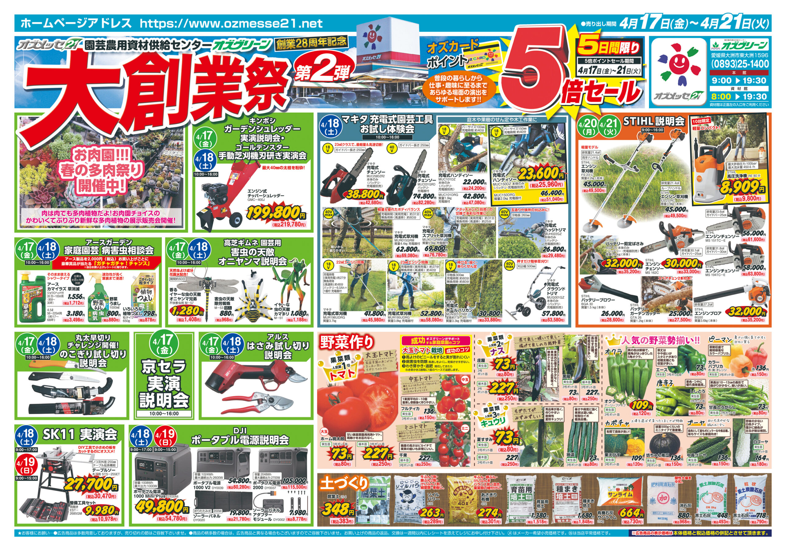 オズグリーン大創業祭 第2弾 4月17日(木)〜4月21日(月)の5日間