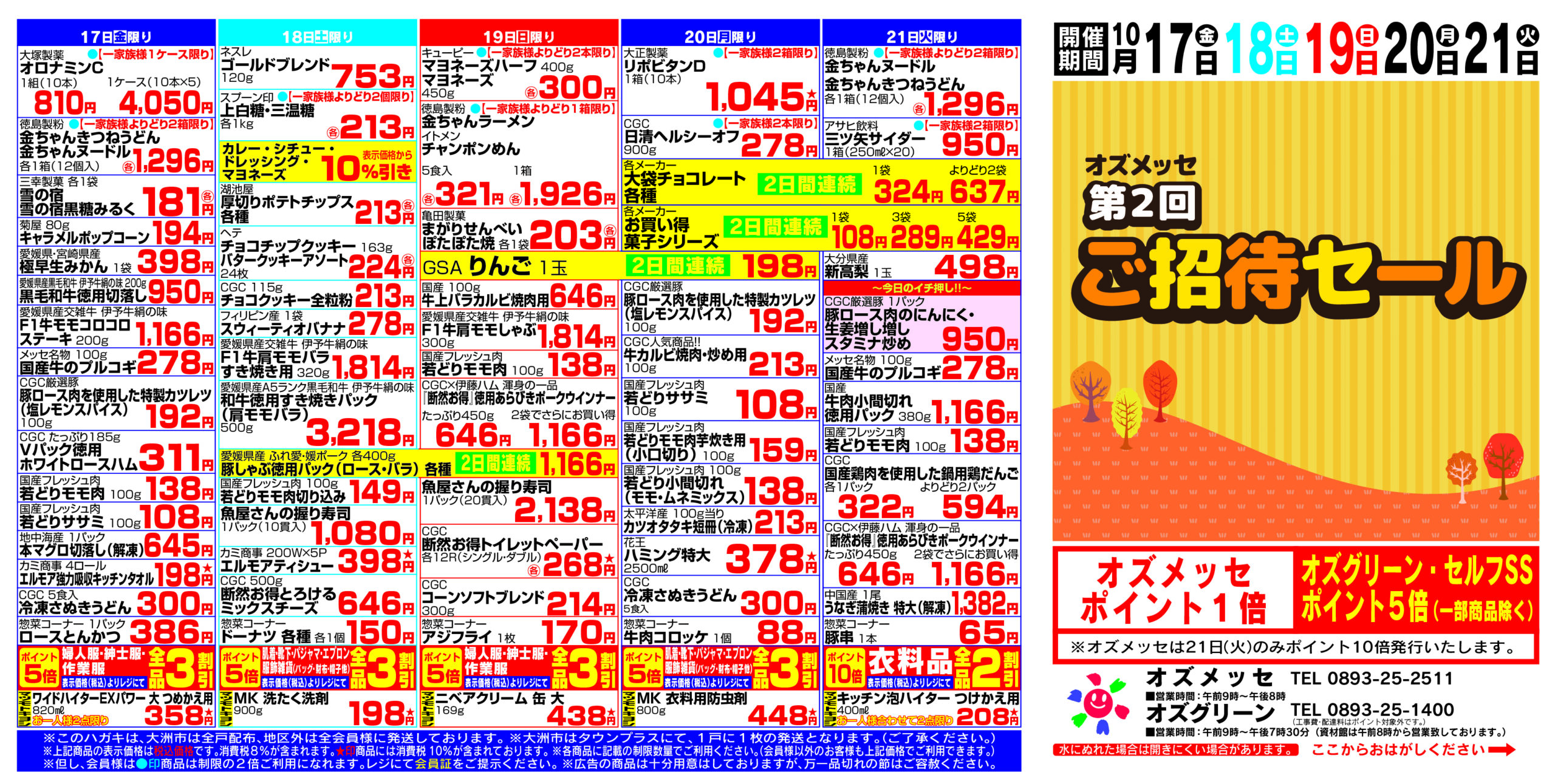 10月第2回ご招待セール 10月17日(金)〜10月21日(火)