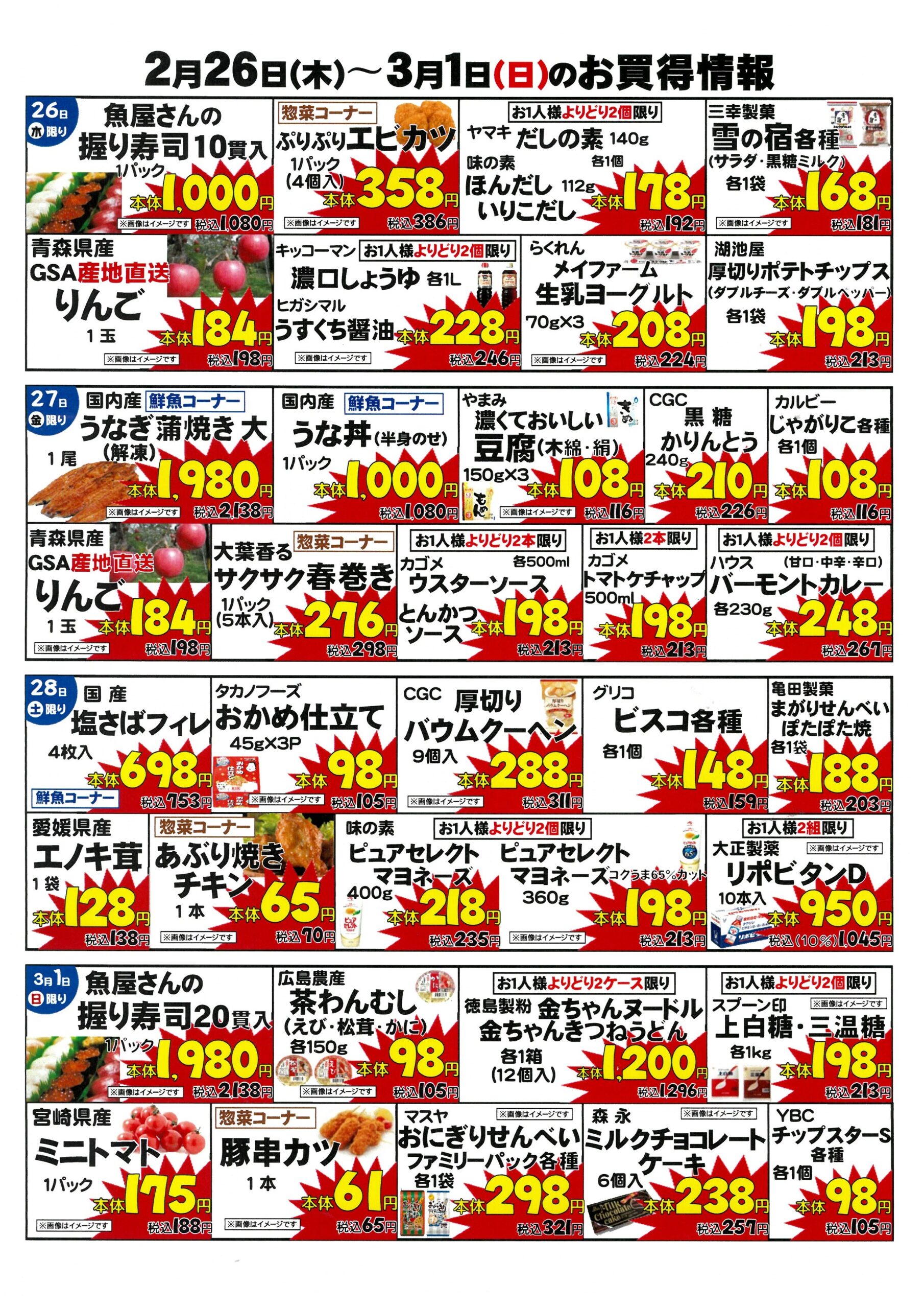 お買い得情報 2月26日(木)〜3月1日(日)